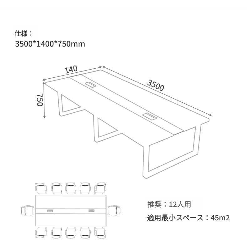 3.5*1.5メートル会議テーブル+12脚の椅子