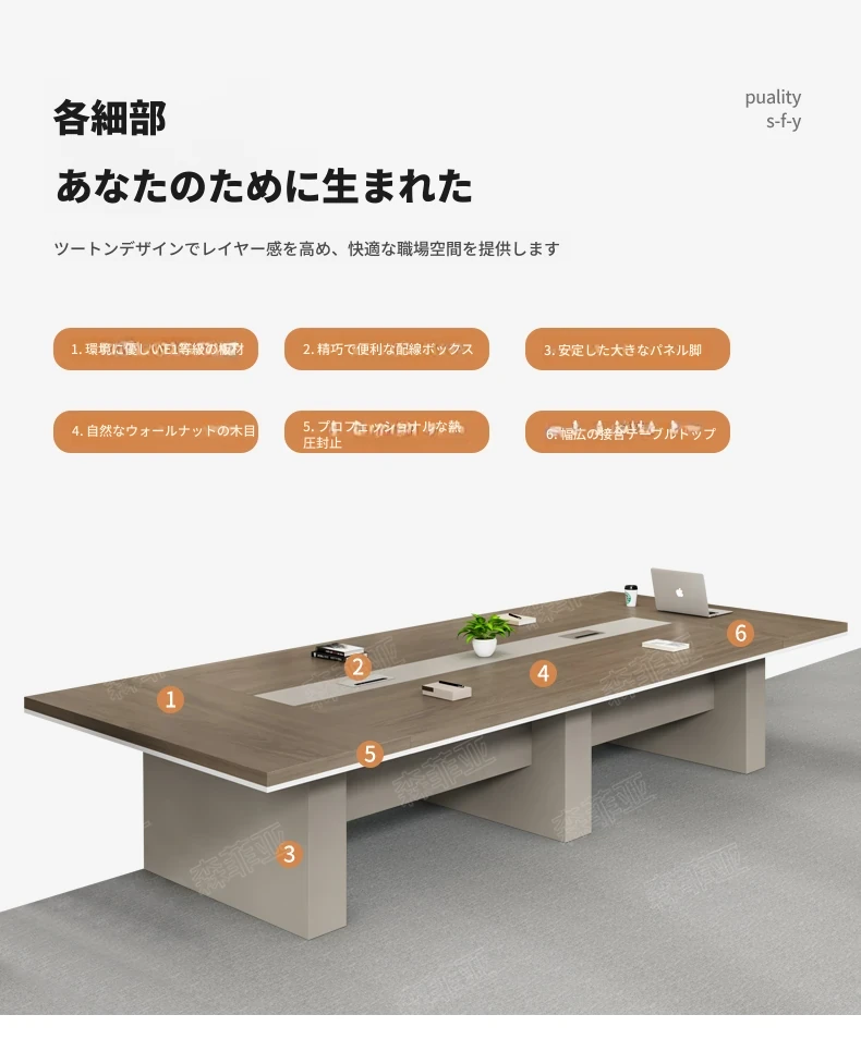 シンプルでモダンな長方形会議テーブルセット|オフィスに最適なスタイリッシュなデザイン|快適な椅子付きで効率的な会議をサポート!