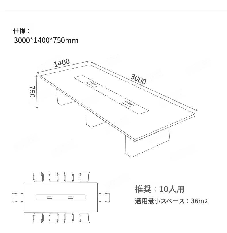 3.0*1.4メートル会議テーブル+10脚の椅子