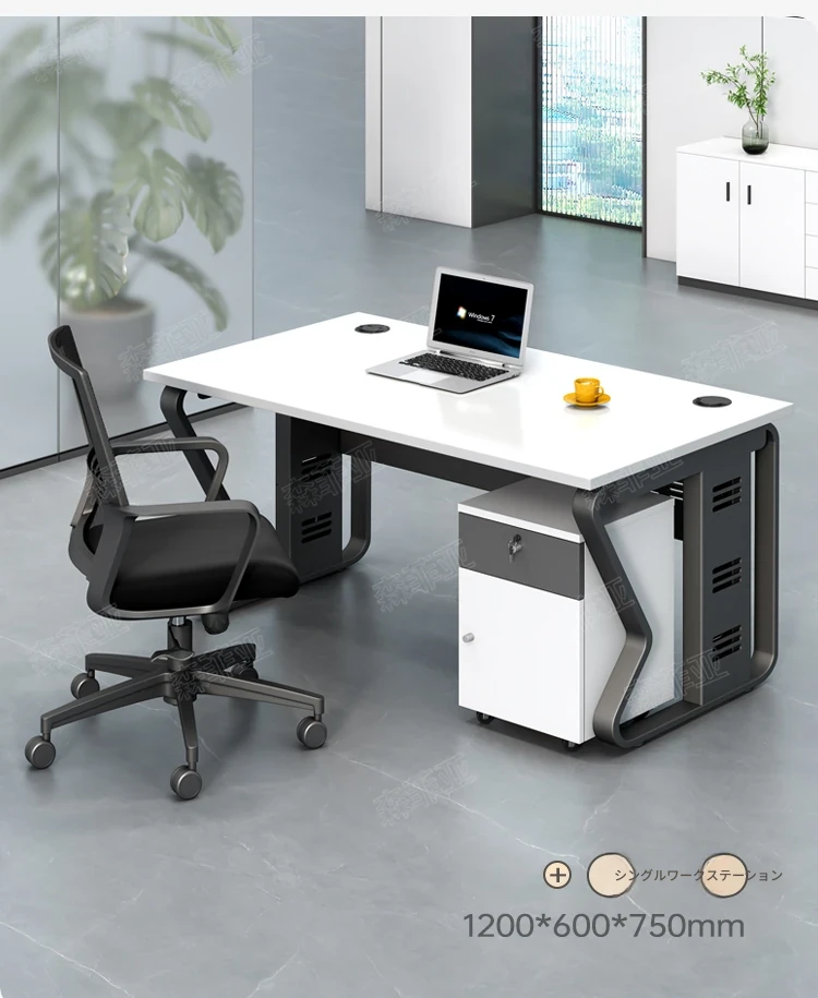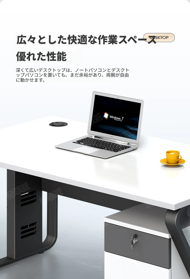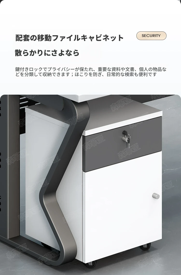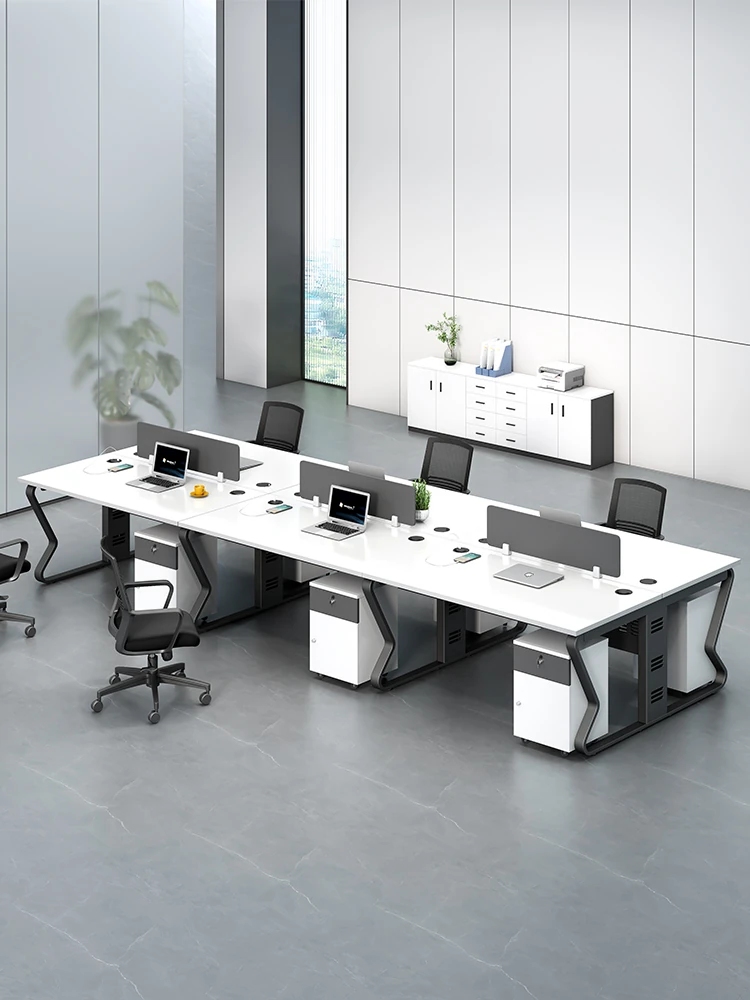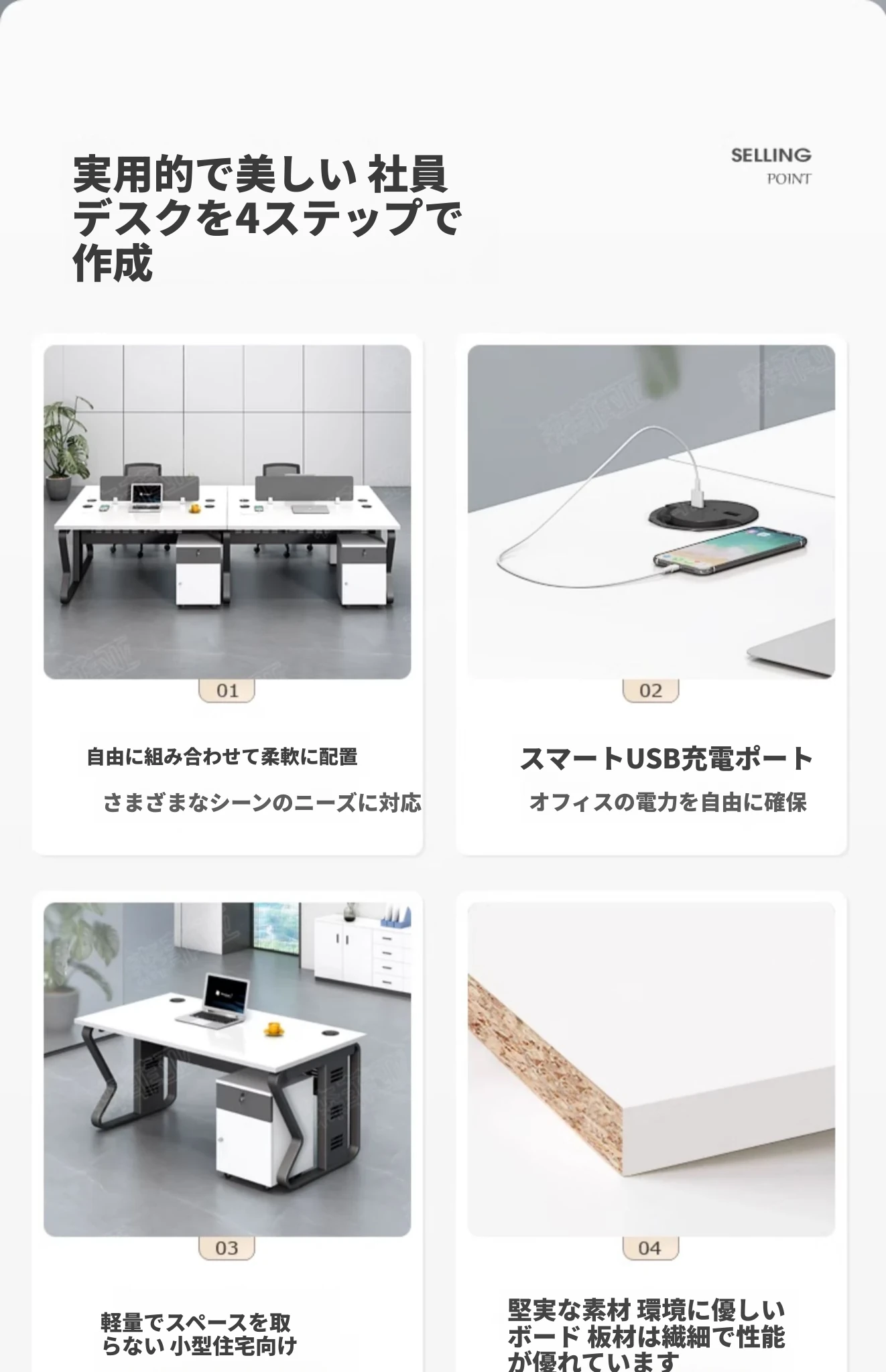 4人用オフィスデスクセット - スタイリッシュなホワイトスチールフレームのデュオデスク。快適な作業環境を提供し、チームの生産性を向上させる理想的なオフィス家具です!