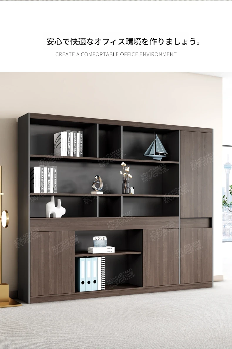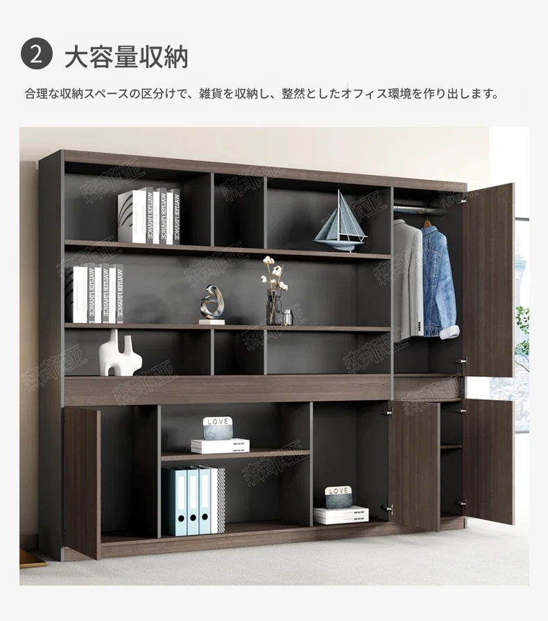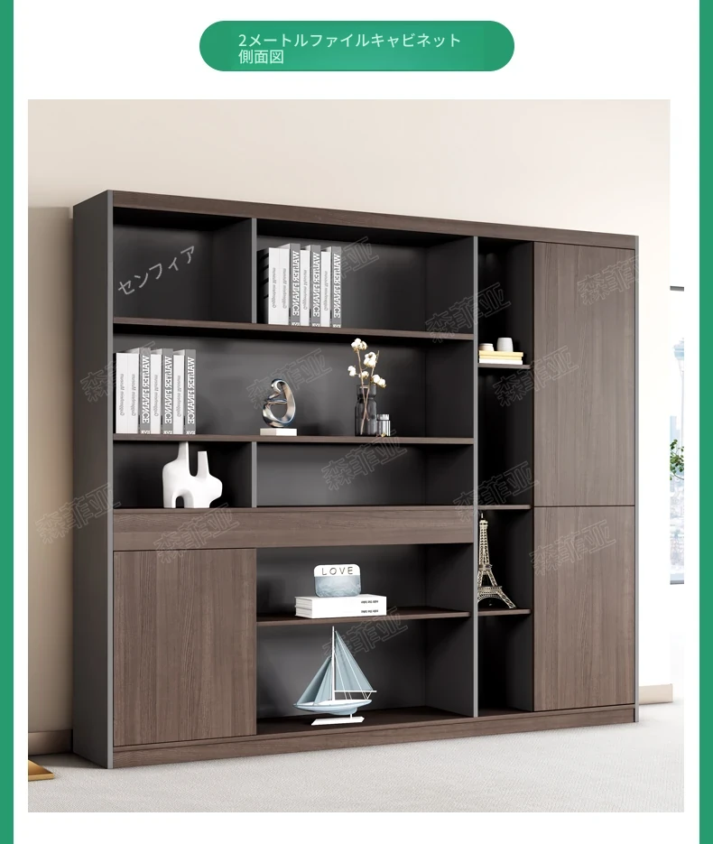 オフィス用木製ファイルキャビネット|高級感溢れるボスオフィス用バックグラウンドキャビネット|収納力抜群のセンスある収納家具【軽奢なデザイン】