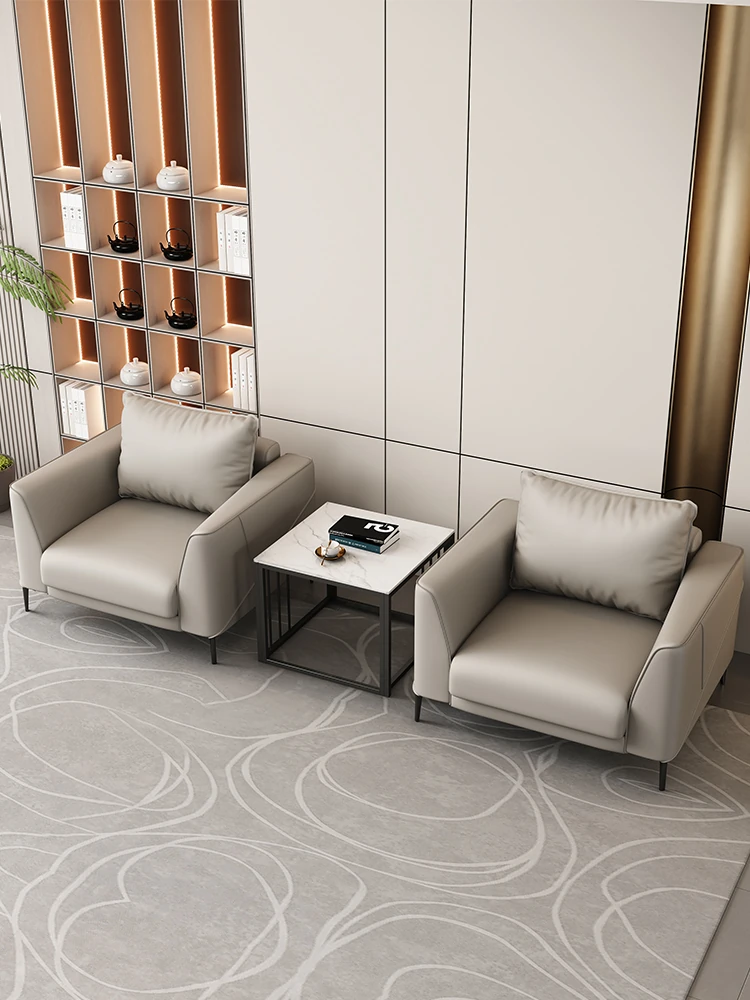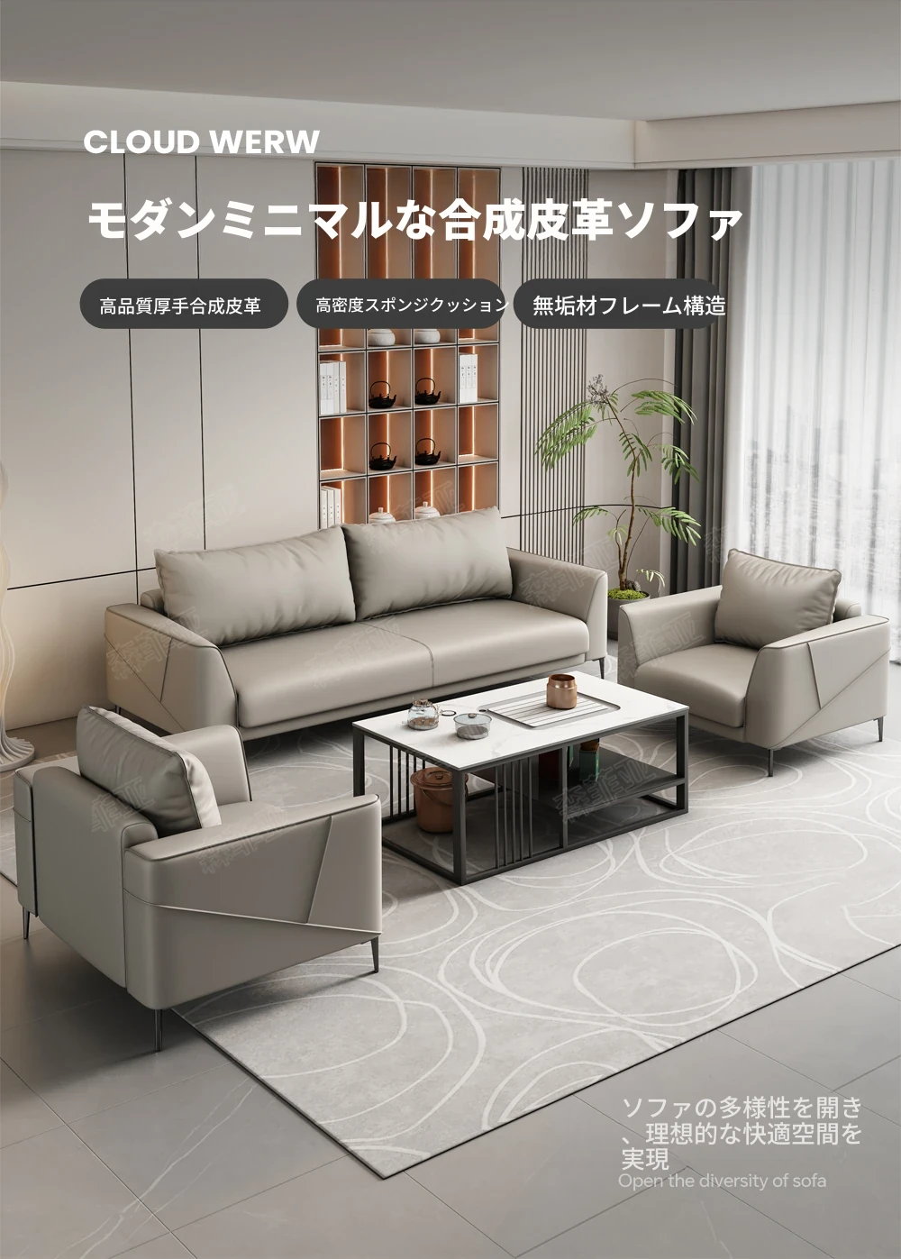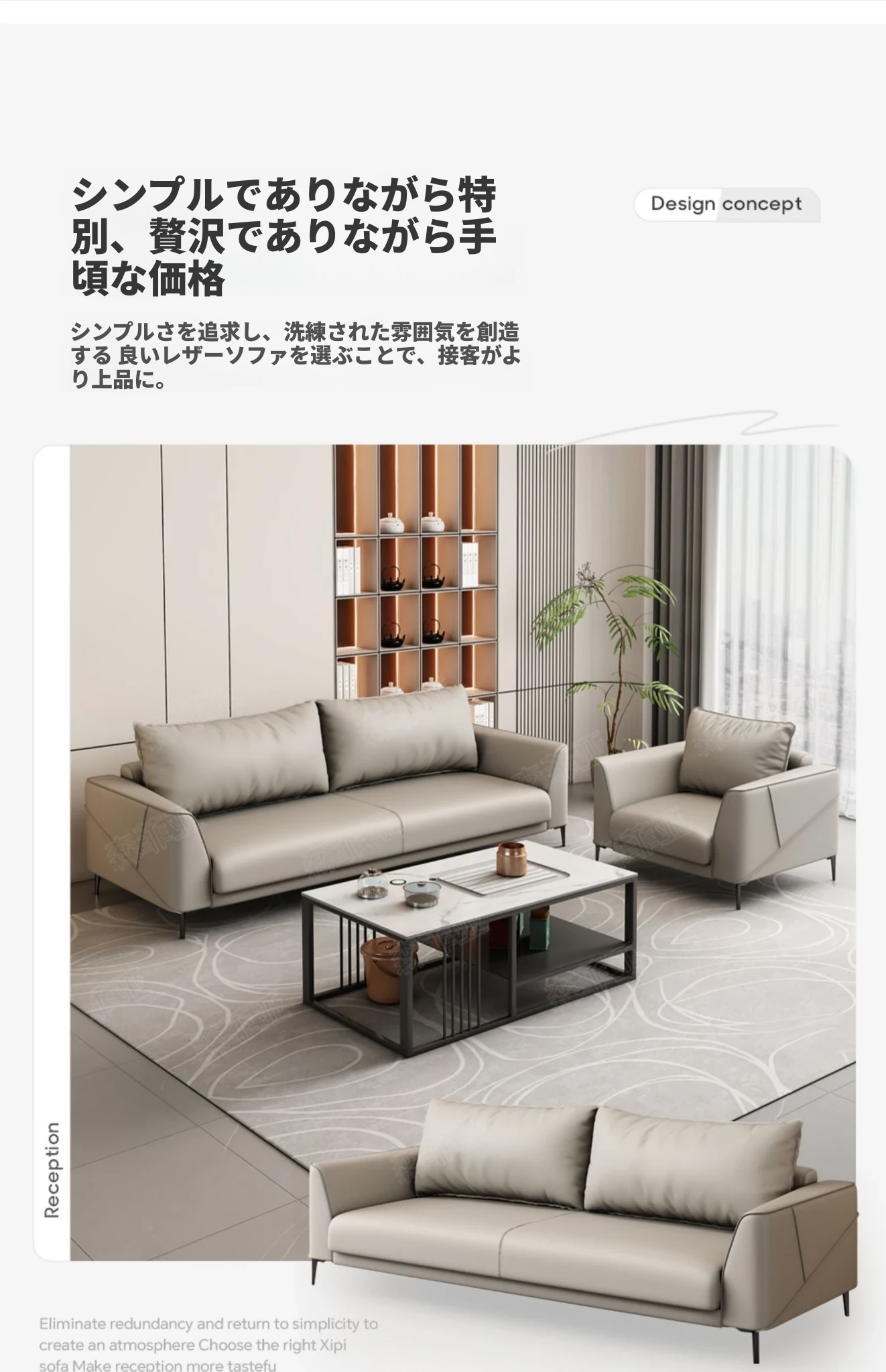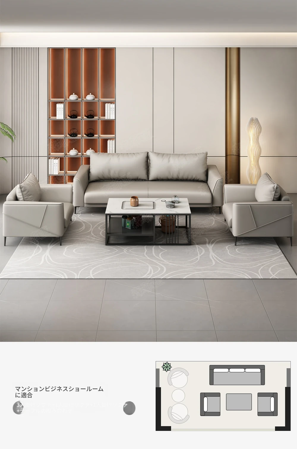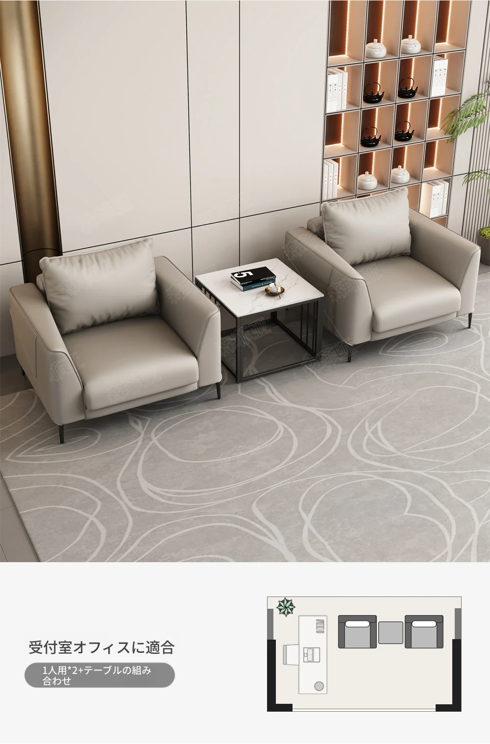 ビジネス向け接待用オフィスソファセット - ミーティングルームやカウンセリングルームに最適なデザイン、快適さとスタイルを兼ね備えたソファとコーヒーテーブルの組み合わせ。お客様をお迎えする特別な空間を演出します!