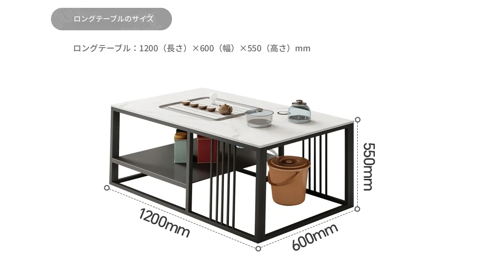 1.2メートル木目茶几(鉄灰色) 配送込み