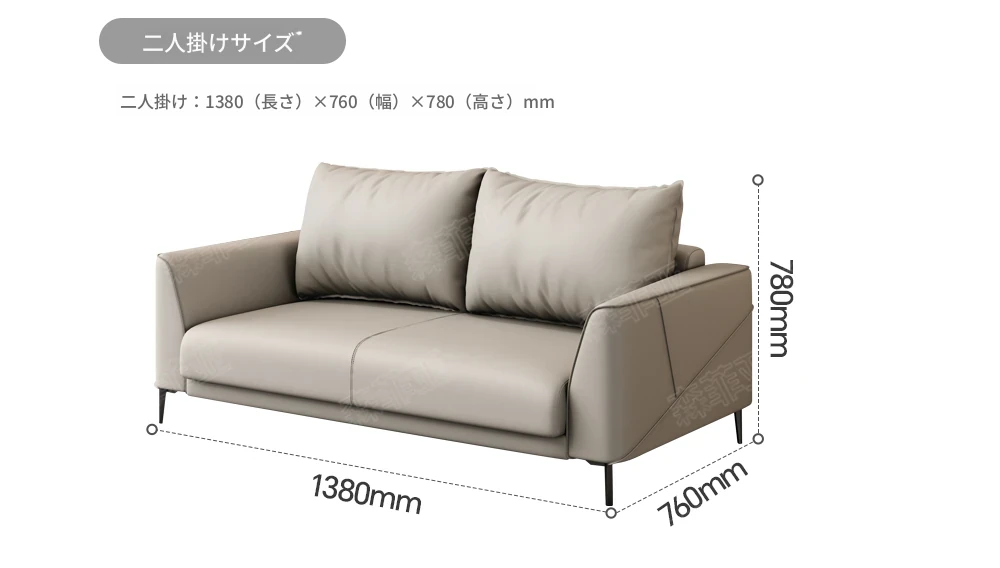 ダブルソファ【頭层牛皮 高定款】 取り付け込み