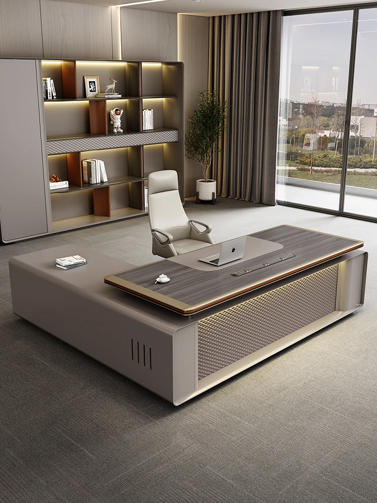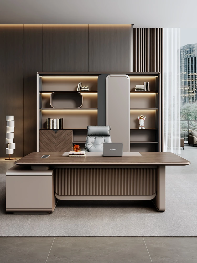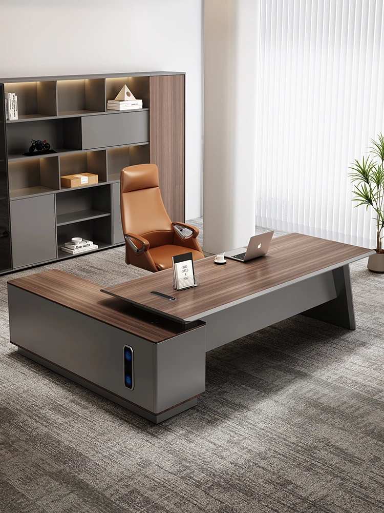 モダンでシンプルなデザインの役員デスクセット - スタイリッシュなオフィス空間を演出する、エレガントな社長デスクとチェアのコンビネーション。高級感あふれる大班台で、仕事のクオリティを向上させましょう!