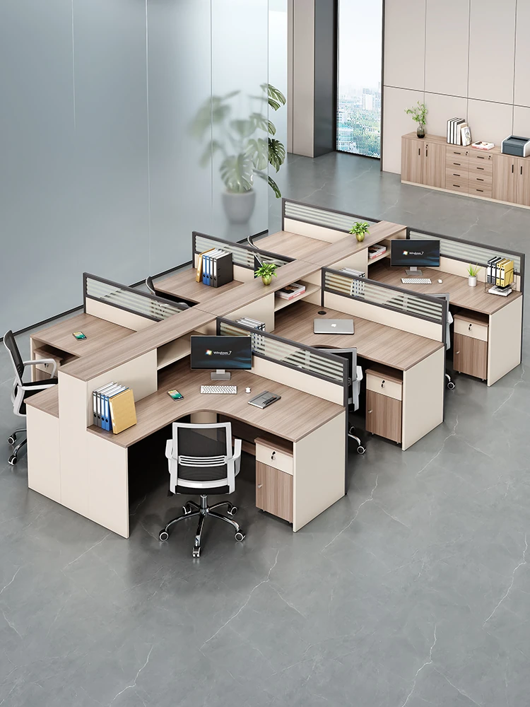 4人用シンプルモダンオフィスデスク|快適な社員用カウンターセット|スタイリッシュな職場空間を演出!