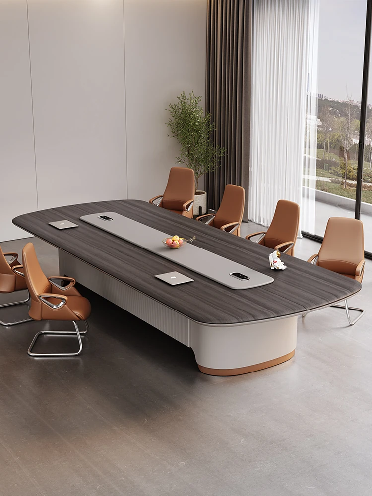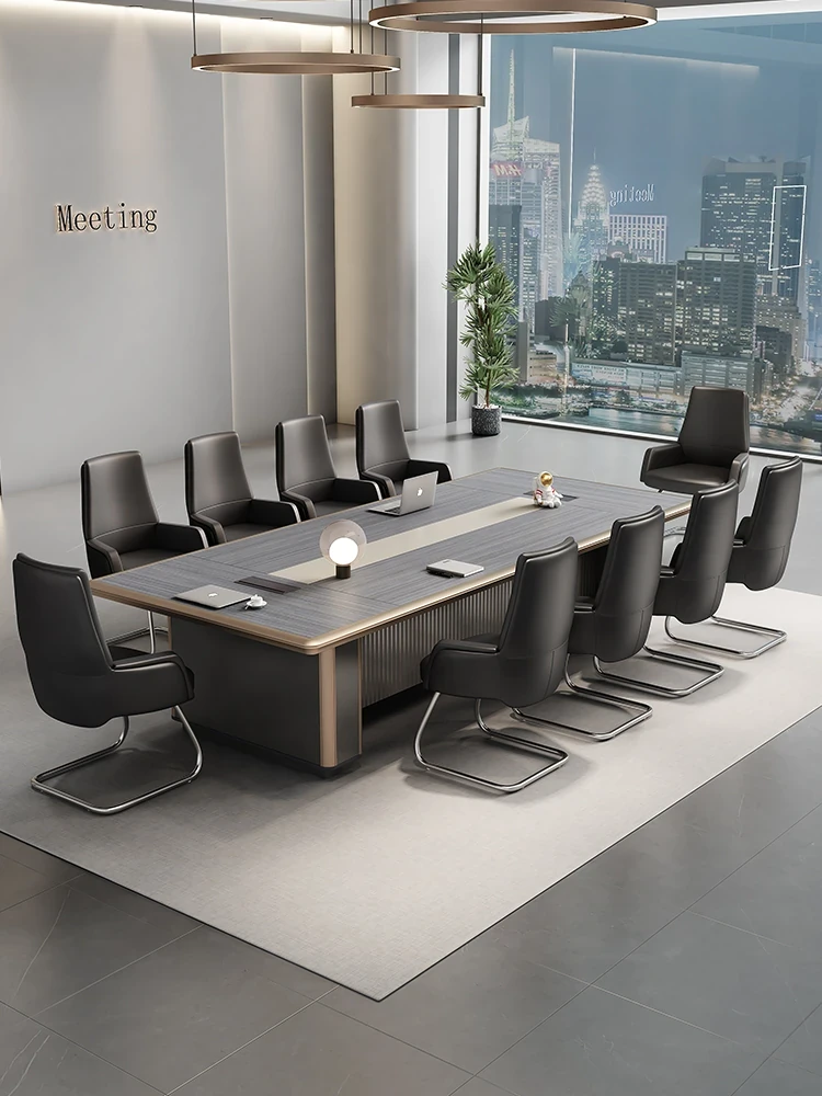 高級感溢れるモダンデザイン!シンプルで洗練された大型会議テーブル&チェアセット - ビジネスオフィスに最適な洽談スペースを提供します。