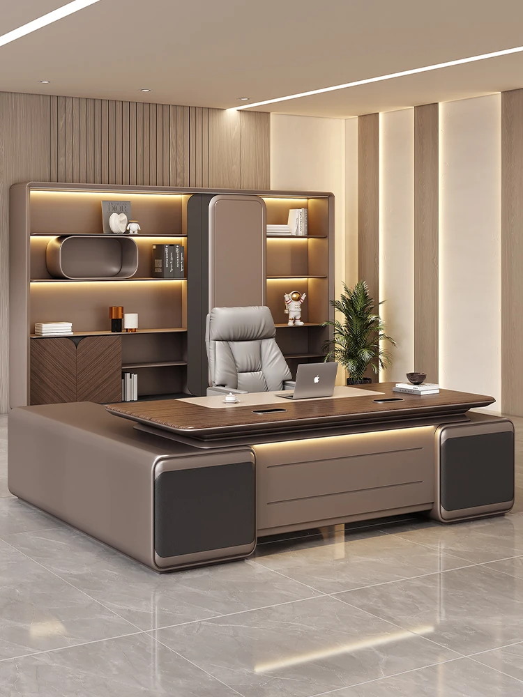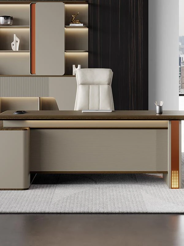 モダンラグジュアリー社長デスクセット - 高級感あふれるオフィス空間を演出する、エレガントなデザインの社長用デスクとチェアの組み合わせ。ビジネスの成功を引き寄せる、洗練された一品です。